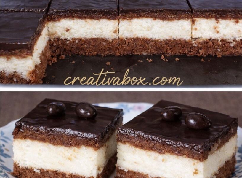 Kolač sa kokosom i griz filom – preliven čokoladnom glazurom