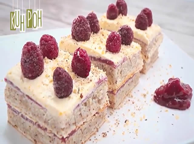 Sastojci za biskvit: 7 bjelanaca, 150 g šećera, 140 g badema, 60 g brašna, 1 kašičica praška za pecivo, 50 ml ulja.