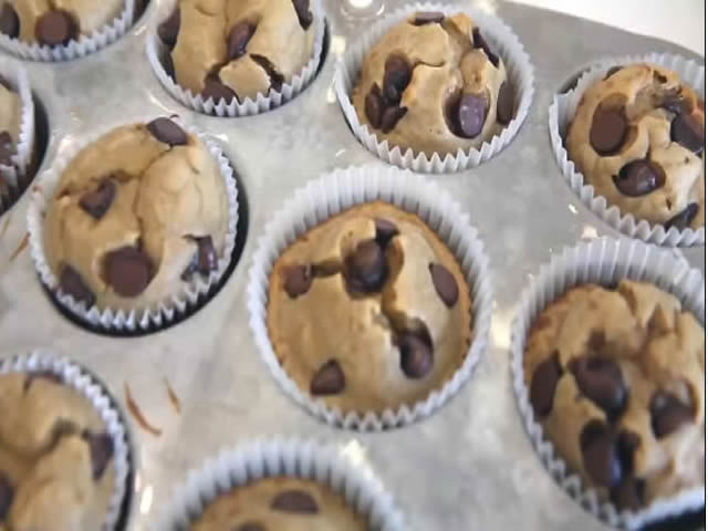 Priprema: Sve sastojke izmešate u blenderu. Smesu sipajte u kalup za mafine. Stavite komadiće čokolade. Zagrejete rernu na 200 stepeni.