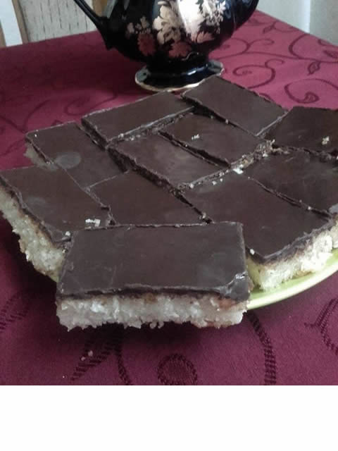 Sastojci: 2 dcl jogurta, 1 dcl mleka, 1 dcl ulja, 2 case secera, 2 case brasna, 1 casa kokosa, 1 vanila, 1 kasicica pecivo.
