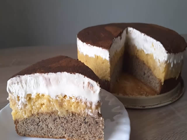 Priprema biskvita: Mjesati 150g margarina sa 125g secera; 5 jaja , dodavati jedno po jedno, 120g ljesnjaka. Mjesati 2 zlicice praska za pecivo sa 50g brasna i 1 zlicica cimeta.