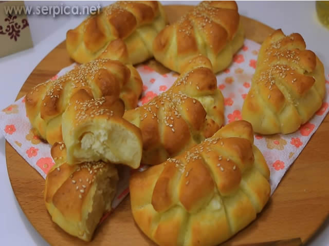 Preklopite kao školjku pa zarežite na 5 mesta (prikazano u videu)..Slažite na tepsiju obloženu pek papirom pa ih prekrijte krpom i ostvaite da nadođu.
