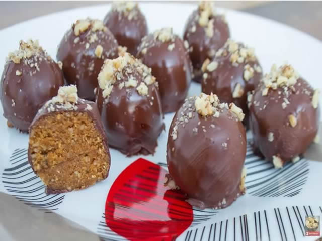 Sastojci: 200g mlevenog keksa, 100g mlevenog oraha, 2 kašike šećera u prahu, 5 kašika pekmeza od kajsije