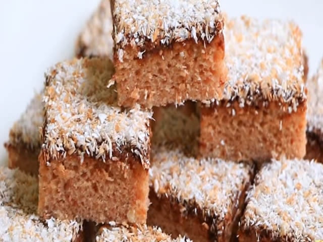 Skuvajte sve sastojke koji su navedeni za preliv i vrelim prelijte preko vrelog kolača. Pospite po želji kokosom ili mlevenim orasima i ostavite da se skroz ohladi. Secite kocke i poslužite. Prijatno.