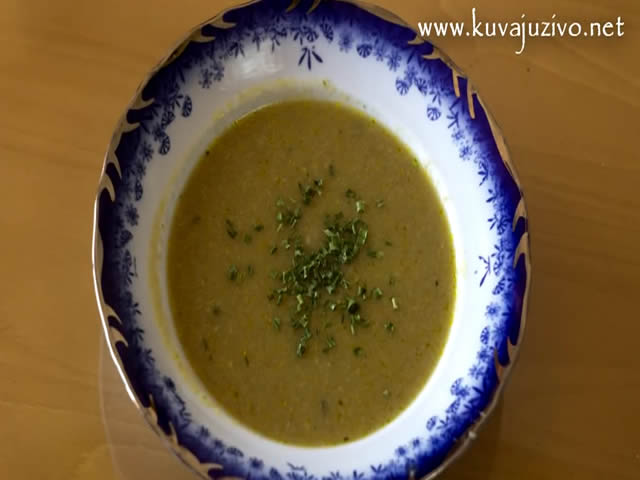 Posle 20 minuta procediti supu, izvaditi lovorov list i izmiksati povrće.