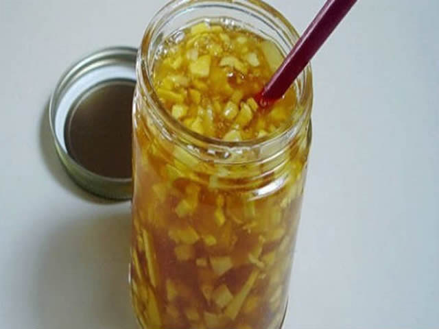 Potrebna su dva veća korena đumbira koji se uz pomoć seckalice usitni. Nakon toga se usitnjeni med pomeša sa pola kilograma meda.