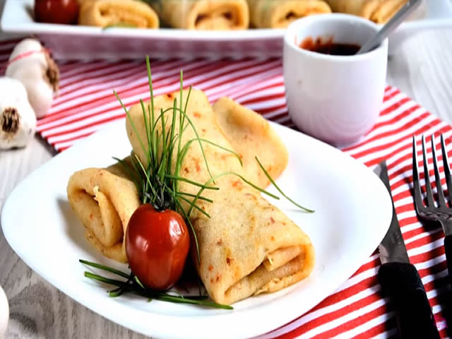 Na svaku palačinku stavite po kašiku fila i uvijte na način na koji vi želite.