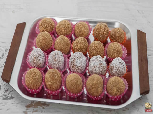 Praviti kuglice i uvaljati ih u mleveni keks i kokos. Stavljati u papirne kuglice.