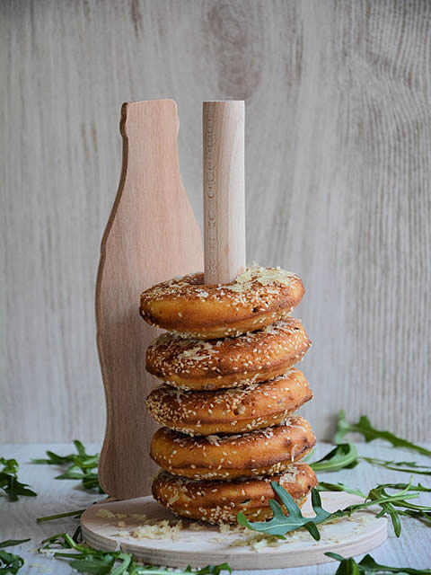 Kalup za krofne podmažite margarinom i obilno pospite susamom.