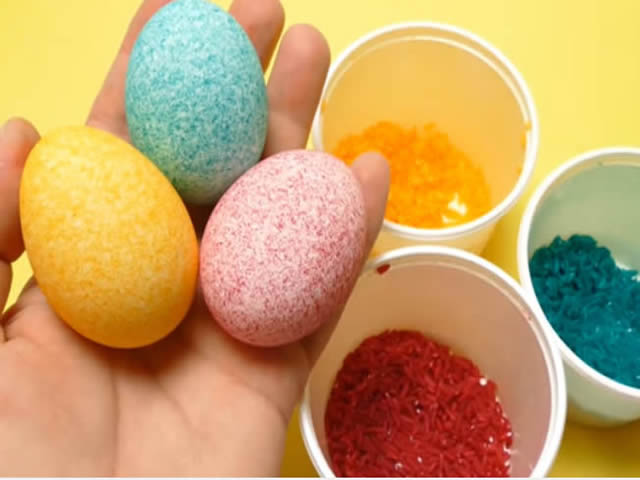 Potrebno je: pirinač, prehrambena boja, plastična posuda za jaja