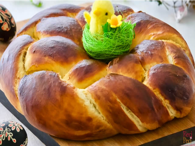 Premjestiti pletenicu na lim obložen papirom za pečenje. Premazati ju mješavinom žumanjca i vrhnja jer joj to daje posebno lijep sjaj nakon pečenja i bude onako fino hruskava od gore.