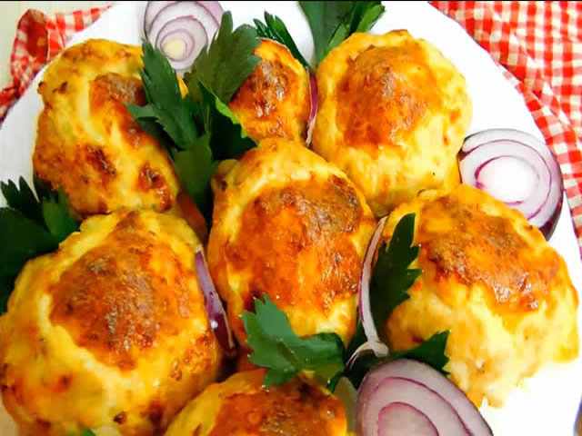 Fil pravite tako što narendate kačkavalj, dodate mu jedno jaje i kašiku pavlake. Pecite u rerni ćuftice odnosno punjena pileća gnezda na 200 C oko 40-tak minuta.