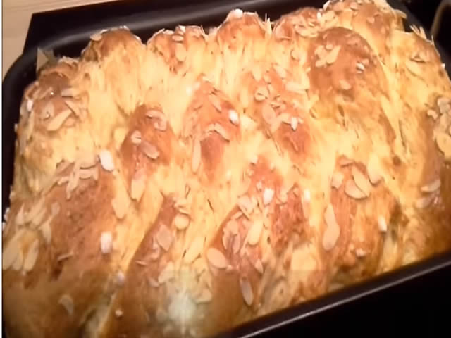 1kg brašna tip 405, 500ml mlakog mlijeka, vanilij šećer 15g,100g šećera, 42g sirovog kvasca za kruh, 150g maslaca, 2 žličice soli,2 jaja, 1 žličica kore limuna ili soka limuna, 5 kapljica arome badema.