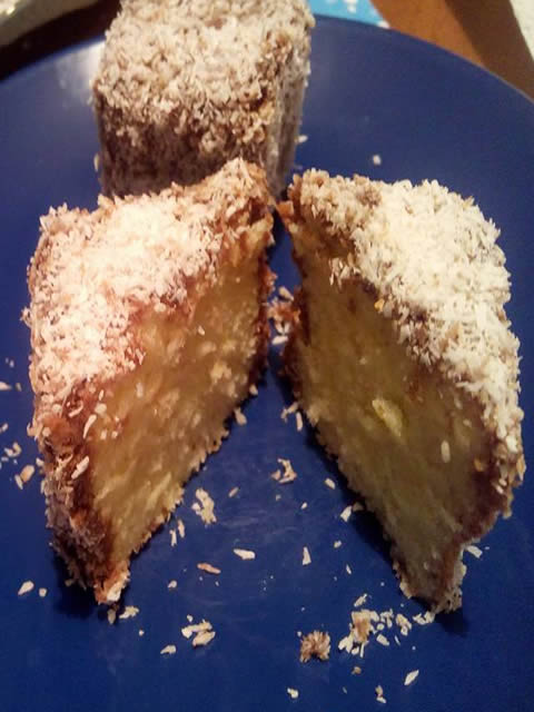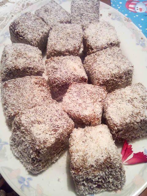 Svaki čupavac pomoću dve viljuške potopite u glazuru, malo ocedite, odmah uvaljajte u kokosovo brašno, dobro pritisnite i ostavite da se suše na rešetki.