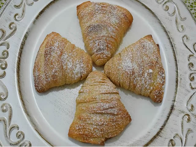 Sastojci za nadjev: 200 ml vode, 60 gr griza, 10 gr soli, 20 gr maslaca, 1 jaje, 250 gr ricotte sira, 120 gr šećera, 40 gr kandiranog cedra, 40 gr kandirane naranče, izribana korica od 1 limuna, 1 žličica cimeta.