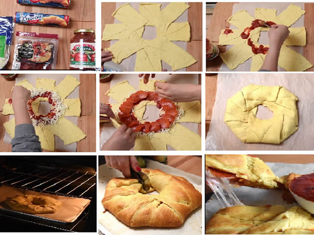 Potrebni sastojci: 250 g testa za kiflice, 1 šolja konzerviran paradajz, 200 g kachkavalj, 150 g kulena.