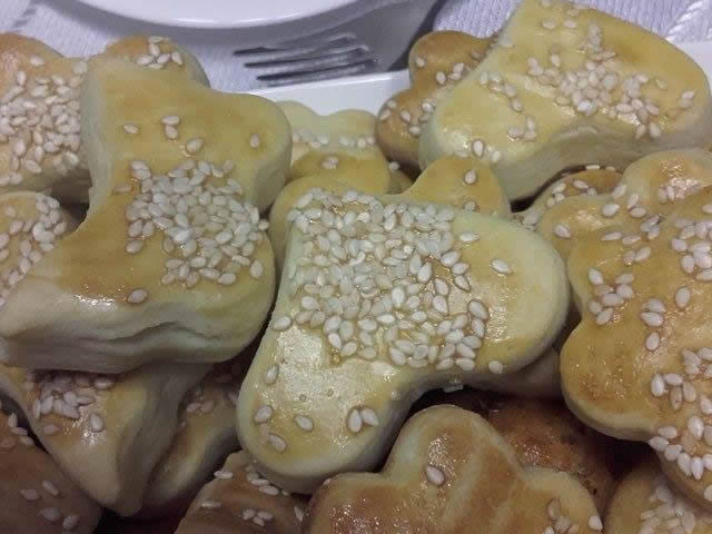 Slagati na podmazan pleh, premazati s jajetom i posuti sa susamom.