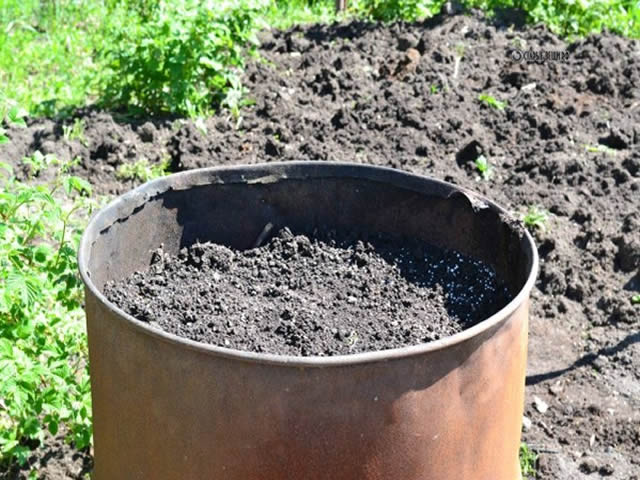 U maju, napunite bure sa zemljom do vrha, oko 10-15 cm.