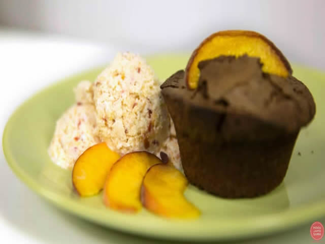 Neophodni sastojci za MAFINE:m250g putera, 300 g šećera, 6 jaja, 1 vanilin šećer, 130 g brašna, 200g čokolade, jedna do dve breskve.