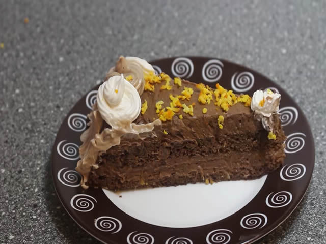 Ređanje: kora – pola preliva – pola fila – kora – još pola preliva – preostali fil. Dekorisati po želji.