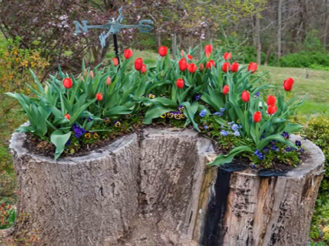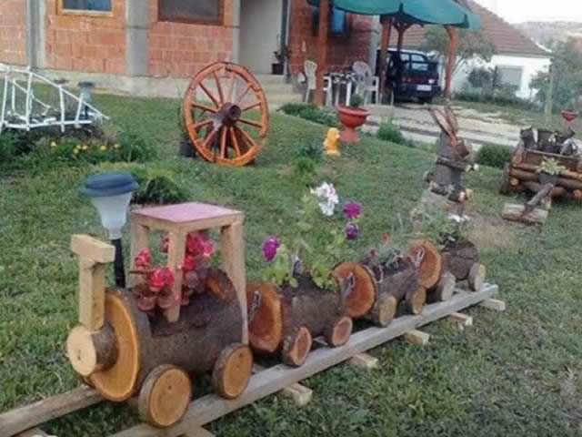 Pronađite dovoljno cepanica ili delove stabala i pokušate da izvedete neki od sledećih predloga koji se odlično uklapaju u svaki ambijent a dozvoljavaju vam da zasadite bilo koju vrstu Cveće.