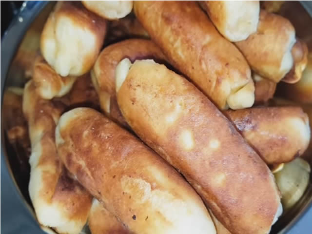 Sastojci: 500 g brašna, 3-4 kuvana krompira, 3 žumanca, 80g otopljenog margarina, malo soli, 150ml toplog mleka, 1 kašičica šećera, 40g svežeg kvasca, oko 200g sira za filovanje, ulje za prženje.