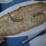 Od brašna, soli, kvasca, ulja i mlake vode umesiti meko testo i ostaviti da naraste 15 min. Zatim testo podeliti na 8 kuglica, i praviti čamčiće kao na slici… I na njih ređati iseckano meso i na meso po tri kašike masti na krajeve i u sredinu.