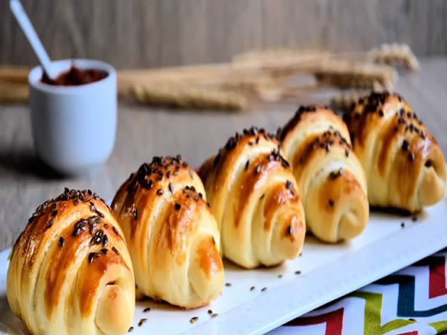 Potrebno za 32 kiflice: 170 ml mleka, 30 g kvasca, 1 kašičica šećer, 1 i po kašičica soli, 50 ml ulja, 100 ml jogurta, 2 jajeta, 600 g brašna, 200 g mortadele. istopljen puter, lan.