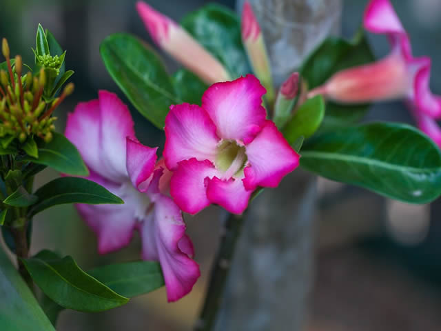Adenium ili pustinjska ruža kako se često zove je sukulent koji se gaji kao sobna biljka, zbog cvetova raznovrsnih boja, i zbog svog neobičnog izgleda, nalik na bonsai. Sa godinama debljanjem i grananjem stabla ova sobna biljka postaje neobičan detalj u domu. Lako oblikovanje krošnje i stabla omogućava stvaranje raznovsnih formi.