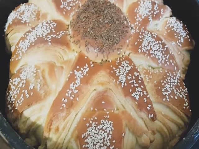 Sastojci: 800 g brašna, 3 jaja, ravna kašika soli, 120 ml ulja, 240 ml toplog mleka, 2 kašičice suvog kvasca, 2 kašike šećera, 70 g margarina, 1 jaje za premazivanje, susam, kim.