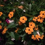 Cvetovi su karakteristicne narandzaste boje, a ima sorti i sa belim i zutim cveticima. Crnoooka Suzana se obicno sadi na balkone kao “ziva zavesa”. Veoma lepo izgleda u saksiji, a drvene stapove treba sloziti kao sator i usmeriti biljku na to. Isto tako lepo moze da izgleda i u visecoj korpi kada se spusta niz nju.