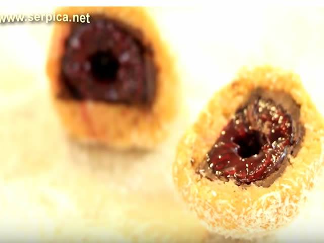 Od ove mase uzimati po malo, i obložiti čokoladnu trešnju, oblikovati među dlanovima da se napravi lepa kuglica i uvaljati u kokos. Prijatno!