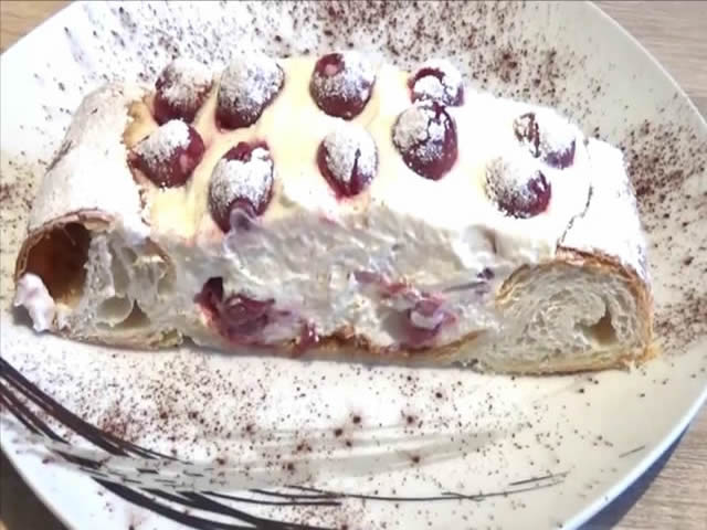 Potrebno je: lisnato tjesto sa kvascem gotovo, 250 g Maskarpone, 250 g svjezeg sira, 400ml slaga to je tecna pavlaka slatka, 2 kesice ucvrscivaca slag fiks, 5 kasika secera u prahu, 350 g tresnje iz kompota a vi mozete i drugo koje volite.