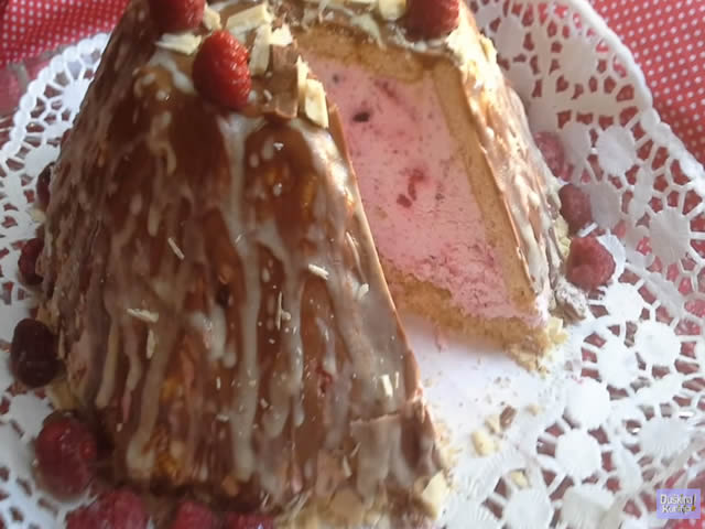 Ja sam ukrasila sa 1oo gr milka cokokade koju sam lagano otopila u jednoj serpici i stavila 2 zlice ulja isto tako sam napravila i sa bjelom cokoladom stavila sam malo malina i nastrugala malo mljecne i malo bjele milke. Vi ukrasite po zelji. Napravite ovu tortu neodoljivo dobrog ukusa pa pocastite svoje goste koji vam dodju iznenada posto je mozete napraviti i ostaviti u zamrzivacu.Prijatno!!!