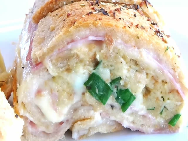 Potrebno je: kalup 22cm, 6 kriski tost hleba americkog i kraci je dosta al sam se snasla haha, 6 lepirica gauda sir, 6 lepirica sunke, 2 kasike majoneze, jedna saka pera od mladog luka, jaje, kore od tosta, malo soli, 100g namaznog sira,