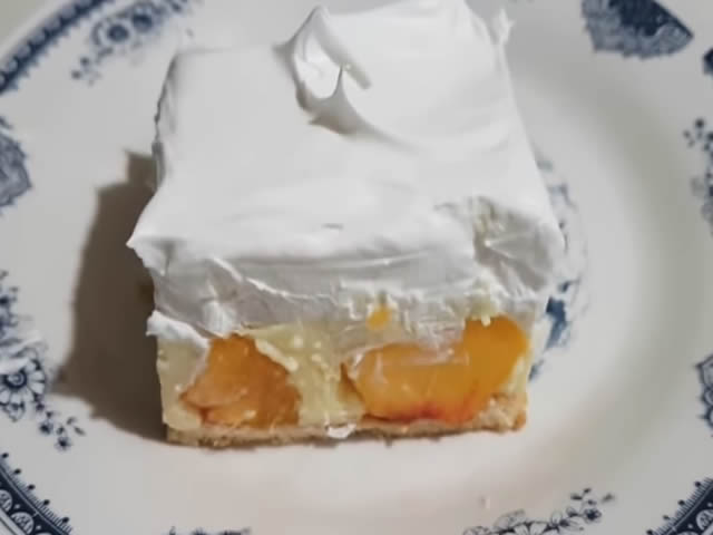 Fil: 600 ml mleka, 100 g pudinga od vanile, 5 kašika šećera, 400g kisele pavlake, 4-5 breskvi, 150g šlag krema.
