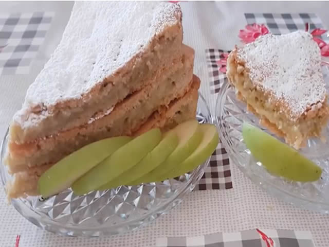 Sastojci za krema: 2 jabuke ( 350 g), 2 žlice glatkog brašna, 2 žlice šećera, 1 jaje, 125 ml mlijeka, 1 vanili šećer