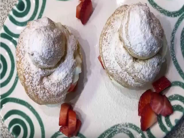 Recept: 1/4L Vode, 100g Maslaca,200g Brasna, Vanilin secer, Prstohvat soli, 4 Jaja, 500g Jagoda, 100g Secera u prahu, Sok od 1/2 limuna, 250ml Slatkog vrhnja.