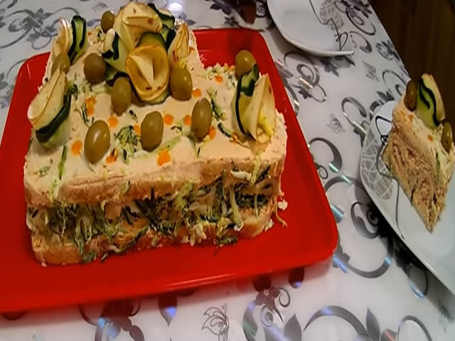 Sastojci: 30 parčeta tost hleba 1kg.feta sira par češnja belog luka ljuta paprika 1 pečena papričica ulje.500gr.šunke 100gr dimljenog kačkavalja 1 krastavica 3 tvrdo kuvana jaja 100gr.majoneza.