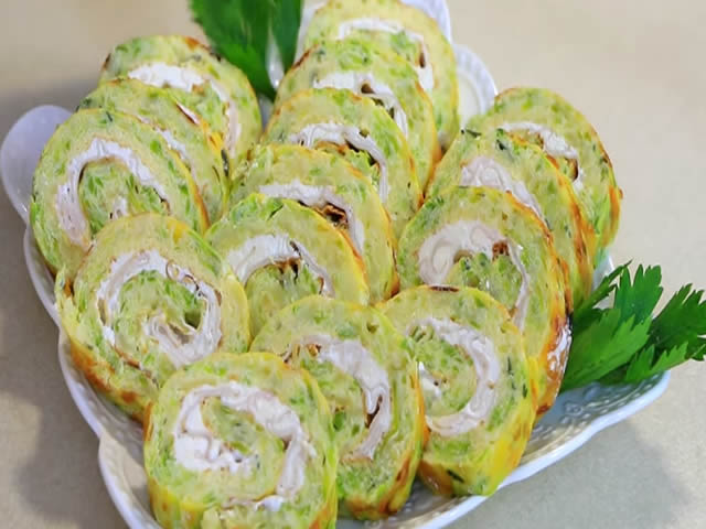 Osavite da se kora ohladi pa je namažite krem sirom, složite pileća prsa i urolajte. Pre sečenja rolat obavezno treba da stoji u frižideru da se stegne i ukusi lepše spoje.