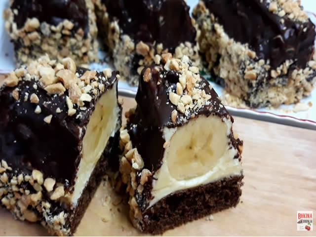 Fil: 1 l mleka, 3 pudinga od vanile, 10-12 kasika secera, 2 vanilin secera, 200gr margarina ili maslca, 5-6 banana.