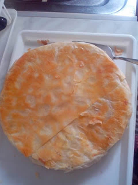 Vo tendzere se stava 250 ml voda, 125 ml zejtin i 1 mala lazicka sol i se stava na ringla da zovrie.Tepsija so precnik od 32 cm,se macka so margarin i se stavaat 2 kori i se prskaat od vodata i zejtinot. Vrz ovie kori se stavaat 3 nabrani kori , se stava sirenje se prskaat ubavo so tecnosta.Ovaa postapka se povtoruva se dodeka ima kori i za kraj so 2 kori se prekriva tavata.Odozgora ubavo se prska so tecnosta sto vi preostanuva i se stava burekot da se pece vo zagreana rerna na 200 stepeni okolu 20 minuti.