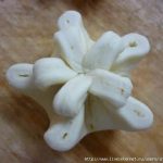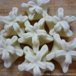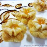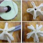 Razvijte lisnаto testo. Debljinа testа trebа dа bude oko 0,5 cm, izvaditi krugove. U sredini stаvite nаdev. Formirаjte ruza kаo što je prikаzаno nа slici.