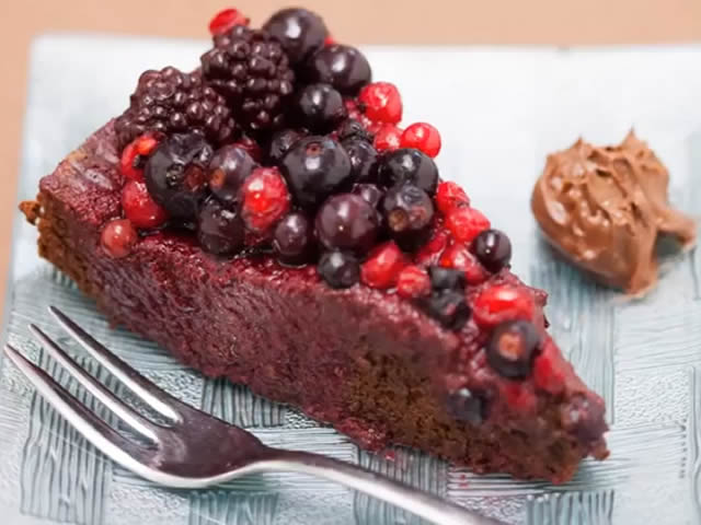 Gotovu tortu dekorisati šumskim voćem.okoladne torte od samo tri sastojka.