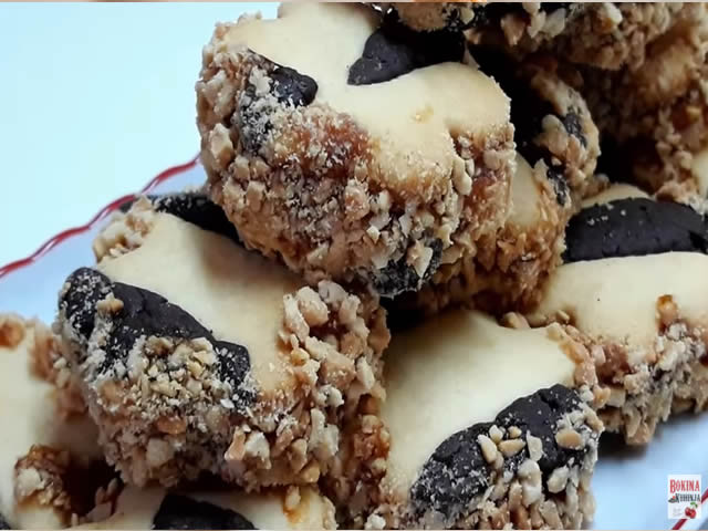 SASTOJCI: 150GR MARGARINA, 50GR SECERA U PRAHU, 50ML ULJA, 50 GR GUSTINA-KUKURUZNI SKROB, 1 JAJE, 1/2PRASKA ZA PECIVO, 1 KASIKA KAKAO PRHA ZA 1 DEO TESTA, BRASNA OKO 400 FR (PO POTREBI), DZEM, KIKIRIKI,LESNICI,ORASI ITD…