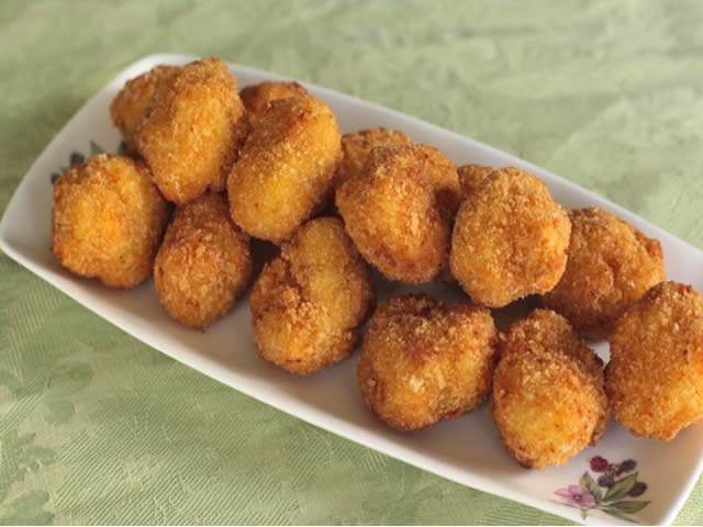 Sastojci: makaroni sa sirom, 2 jaja, 200 grama hlebnih mrvica, biljno ulje za prženje, so i biber po želji.