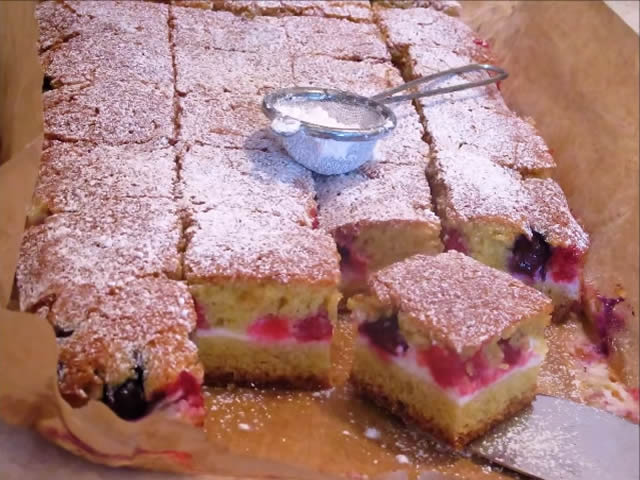 Za nadjev: 350 g svježeg sira, 180 g šećera, snijeg od 2 bjelanjka, 1 žlica brašna, sok i kora limuna, 300 g šumskog voća ( borovnice i maline ), šećer u prahu za posipanje.