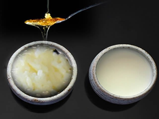 Rižu kuhati i ocijediti. Sačuvati vodu. Pomiješati kašiku toplog mlijeka u rižu, zatim dodajte kašiku meda.