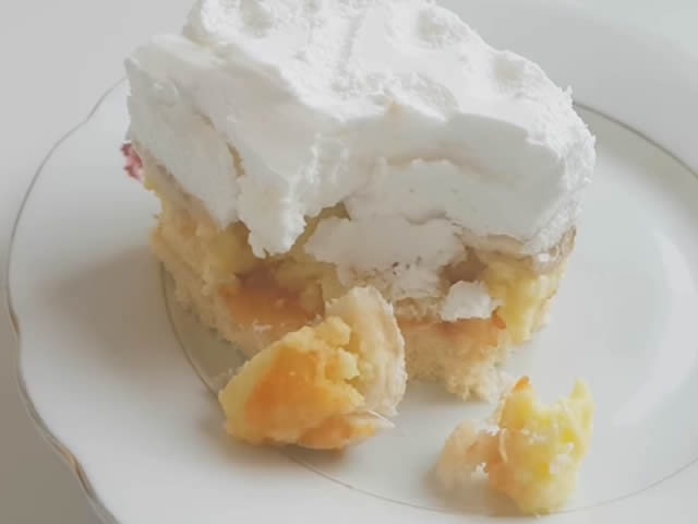 Ohlađenu koricu premazati džemom od kajsija, preko ređati fil i seckane banane. Dekorišite šlagom.