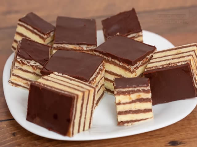 Premazati sa četiri kašike svetle kreme. Ponovo pokriti korom, pritisnuti dlanovima i postupak ponavljati dok se ne utroše sastojci. Gornja kora se ne premazuje nego preliva glazurom od čokolade. Pokriti papirom za pečenje i položiti tacnu ili dasku veličine kore i opteretiti. Ostaviti da odstoji najmanje sat vremena. Kolač preliti glazurom od čokolade (rastopiti čokoladu, margarin i ulje, malo prohladiti i preliti preko kore). Staviti u frižider da se glazura stegne i kore upiju kreme.